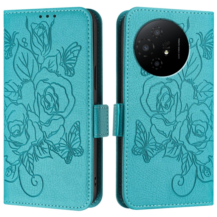 Funda de Cuero Antirrobo RFID para TCL 50 XL con Diseño Rosa en Relieve (Azul Claro)