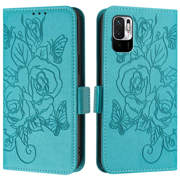 Funda de Cuero Antirrobo Rfid con Relieve Rosa para Redmi Note 10 5G/Note 10T 5G (Azul Claro)