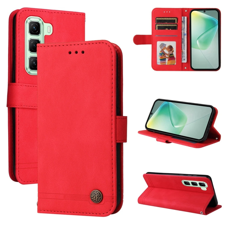 Funda de Cuero con Botones de Metal y Diseño Árbol de la Vida para Infinix Hot 50 5G (Rojo)