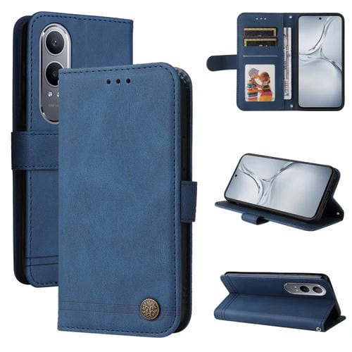 Funda de Cuero con Botones de Metal y Diseño de Árbol de la Vida para Oppo K12X (Azul)