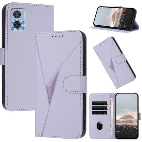 Funda de Cuero con Cierre de Hebilla y Diseño Triangular para Motorola Moto E22 (Morado Claro)