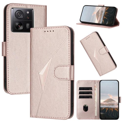 Funda de Cuero con Hebilla Triangular para Xiaomi 13T (Oro Rosa)
