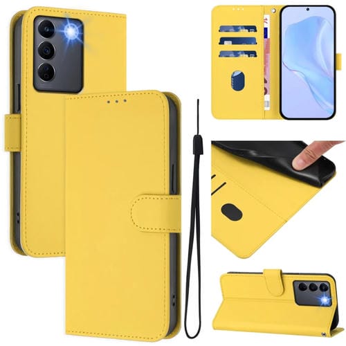 Funda de Cuero con Cordón para Teléfono con Sensación de Piel Global para Vivo V27 5G/V27 Pro 5G (Amarillo Limón)