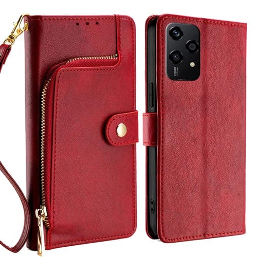 Funda de Cuero con Cremallera para Honor 200 Lite 5G (Rojo)