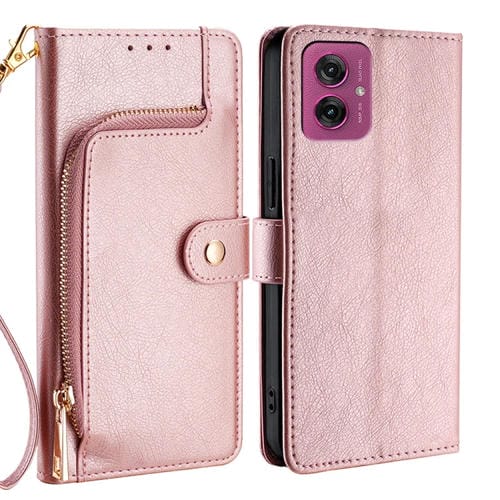 Funda de Cuero con Cremallera para Motorola Moto G55 5G (Oro Rosa)