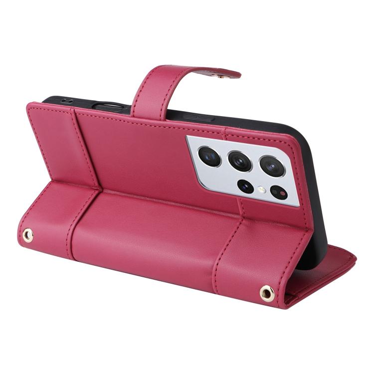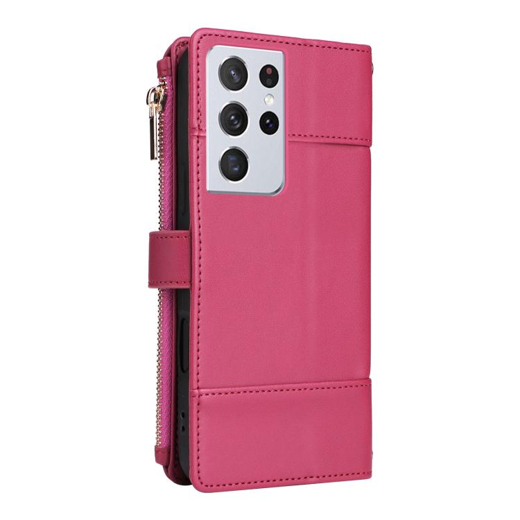 Funda de cuero con cremallera y bloqueo RFID para Samsung Galaxy S21 Ultra 5G (roja)