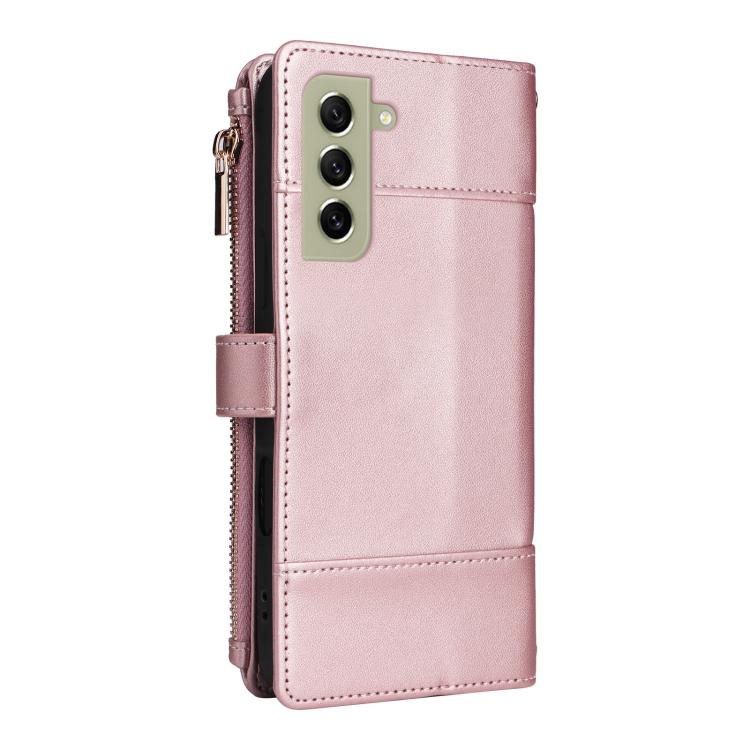 Funda de cuero con cremallera y bloqueo RFID para Samsung Galaxy S22+ 5G (oro rosa)