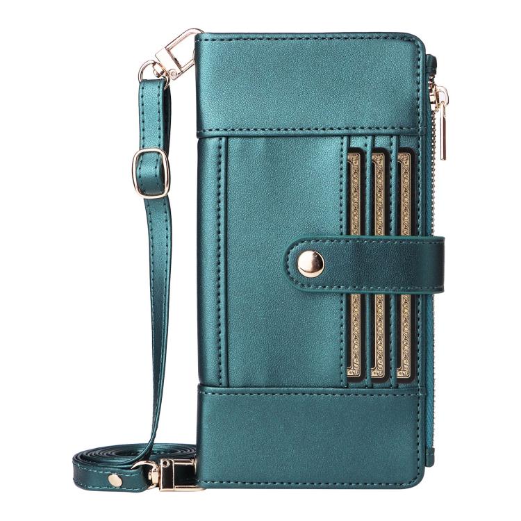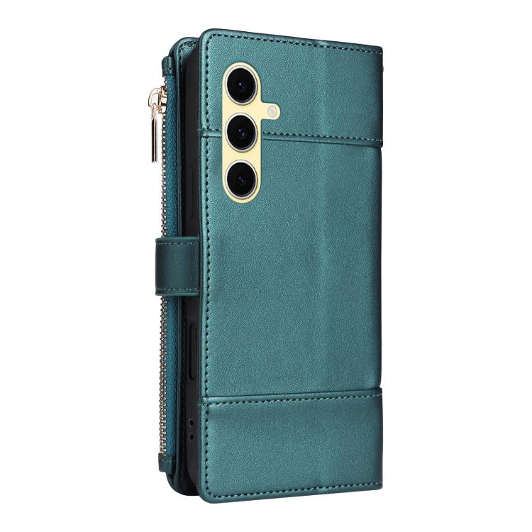 Funda de cuero con cremallera y bloqueo RFID para Samsung Galaxy S23 FE 5G (verde)
