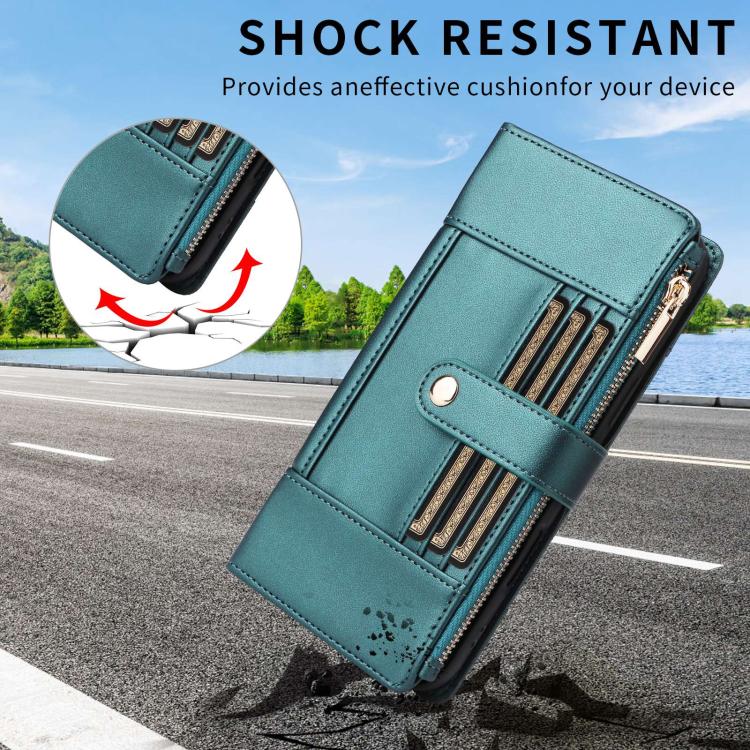 2. Función de billetera multitarjeta: Ranuras para tarjetas y compartimento para efectivo con cremallera para guardar tarjetas de crédito, efectivo o billetes pequeños para las necesidades diarias. (Nota: Dos ranuras para tarjetas son para teléfonos pequeños, tres ranuras para tarjetas son para teléfonos grandes, sujeto al producto real).