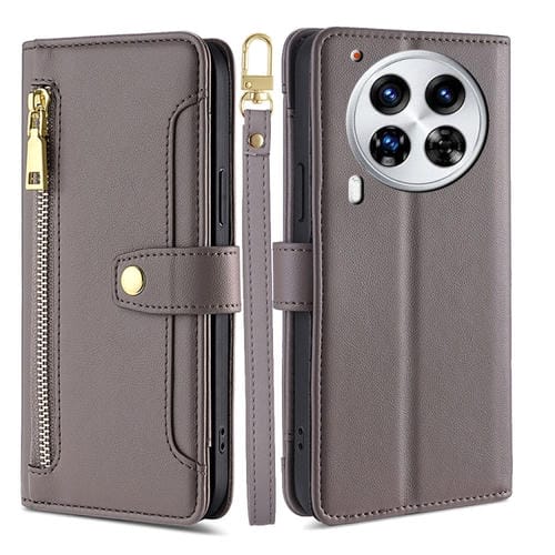 Funda de Cuero Tecno Camon 30 Premier 5G con Cremallera y Diseño Cruzado (Gris)