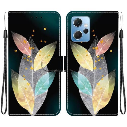 Funda de Cuero con Dibujo de Colores y Textura de Cristal Global para Redmi Note 12 4G (Hojas de Colores)