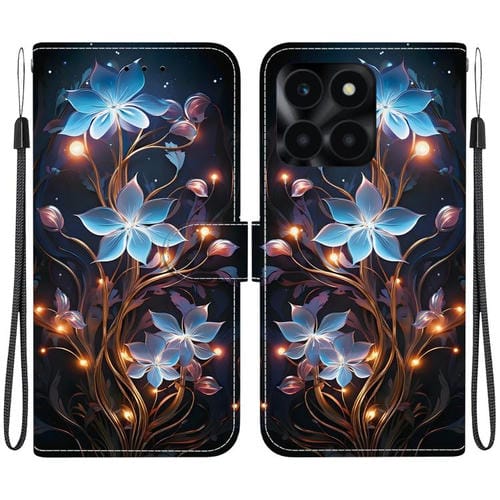 Funda de Cuero para Honor X6A con Dibujo de Colores y Textura de Cristal (Flor de Linterna Pequeña)