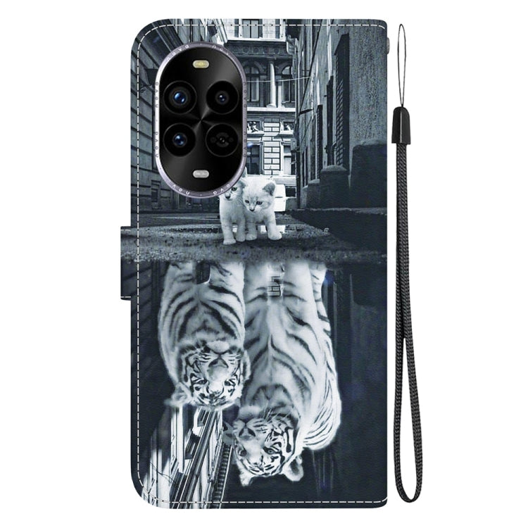 Funda de Cuero Huawei Nova 13 Pro con Dibujo de Colores y Textura de Cristal (Reflejo de Gato y Tigre)