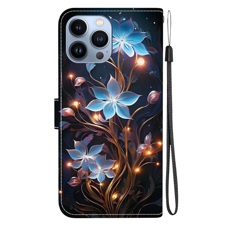Funda de Cuero con Dibujo de Colores y Textura de Cristal para iPhone 14 Pro Max (Flor de Linterna Pequeña)