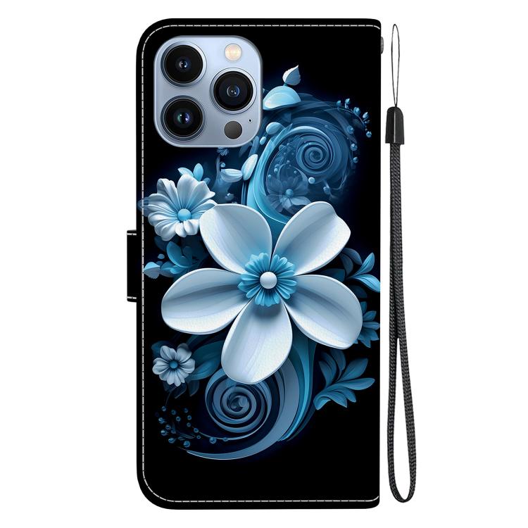 Funda de Cuero con Dibujo de Colores y Textura de Cristal para iPhone 14 Pro Max (Orquídea Negra)