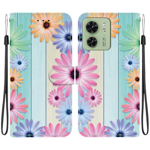Funda de Cuero Motorola Edge 40 con Dibujo de Colores y Textura de Cristal (Girasoles)