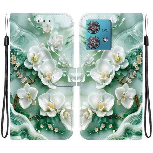 Funda de Cuero con Dibujo y Textura de Cristal para Motorola Edge 40 Neo (Flores de Jade)