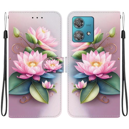Funda de Cuero Motorola Edge 40 Neo con Dibujo de Colores y Textura de Cristal (Lotus)