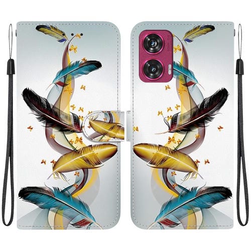 Funda de Cuero con Dibujo y Textura de Cristal para Motorola Edge 50 Fusion (Plumas Doradas)