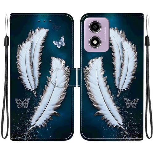 Funda de Cuero para Motorola Moto G04S/E14 con Dibujo y Textura de Cristal (Plumas de Mariposa Blancas)