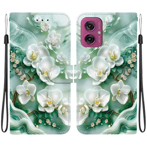 Funda de Cuero para Motorola Moto G55 con Dibujo de Colores y Textura de Cristal (Flores de Jade)