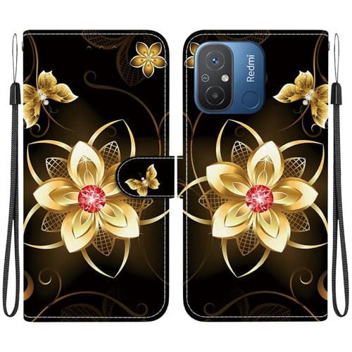 Funda de Cuero con Dibujo de Colores y Textura de Cristal para Redmi 12C/11A (Flor Dorada)