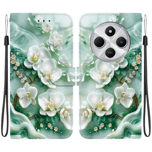 Funda de Cuero con Dibujo de Colores y Textura de Cristal para Redmi 14C 4G (Flores de Jade)