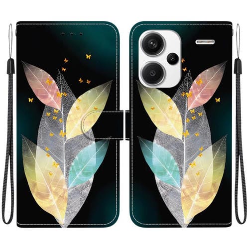 Funda de Cuero con Dibujo de Colores y Textura de Cristal para Redmi Note 13 Pro+ 5G (Hojas de Colores)