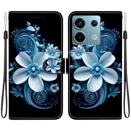 Funda de Cuero con Dibujo de Colores y Textura de Cristal para Redmi Note 13 Pro 5G (Orquídea Negra)