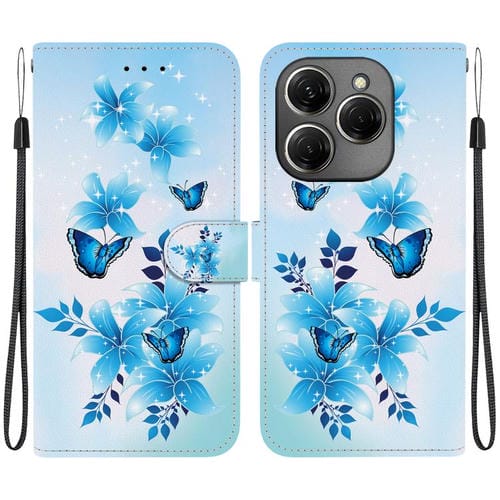 Funda de Cuero para Tecno Spark 20 Pro con Dibujo de Colores y Textura de Cristal (Mariposas Azules)