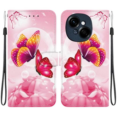 Funda de Cuero para Tecno Spark Go 1 y Pop 9 Pro con Dibujo de Colores y Textura de Cristal (Mariposas Rosas)