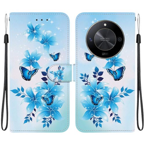 Funda de Cuero con Dibujo y Textura de Cristal para Honor X9B y Magic6 Lite (Mariposas Azules)