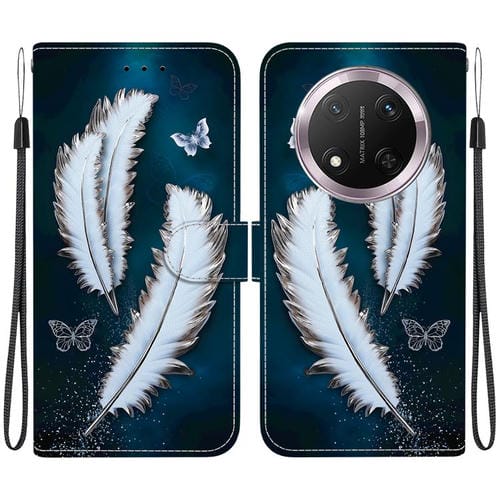 Funda de Cuero para Honor X9C con Dibujo de Colores y Textura de Cristal (Plumas de Mariposa Blancas)
