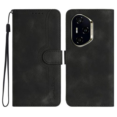 Funda de Cuero Honor 300 Pro y 300 Ultra con Diseño de Corazón y Tacto Sedoso (Negra)