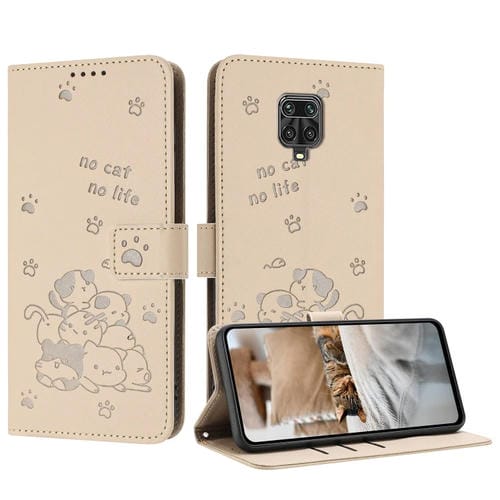 Funda de Piel con Diseño de Gatito En Relieve y Cordón para Redmi Note 10 Lite (Beige)