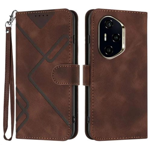 Funda de Cuero para Honor 300 Pro y Honor 300 Ultra con Diseño de Líneas y Tacto Suave (Café)
