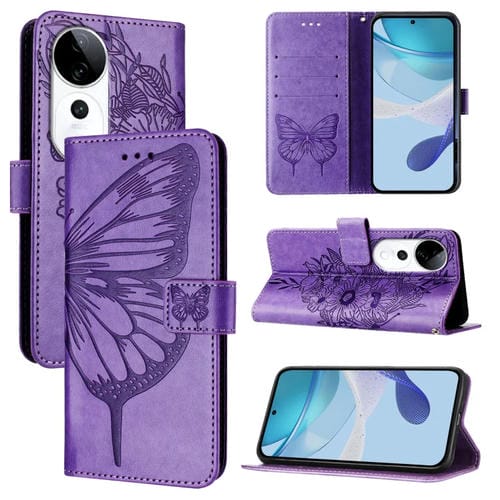 Funda de Cuero con Diseño de Mariposa En Relieve para El Teléfono Vivo S19 Pro (Morado Claro)