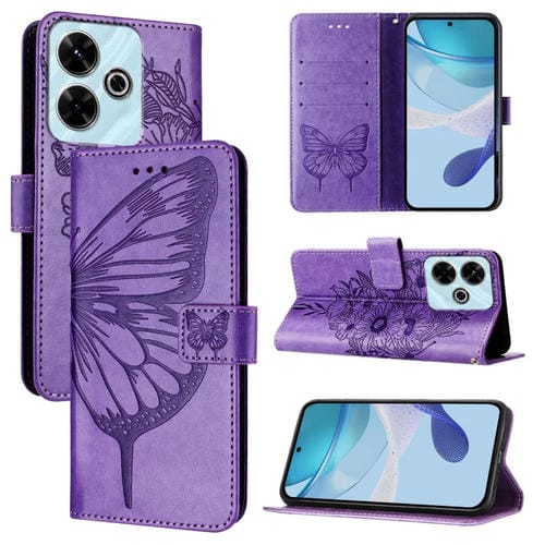 Funda de Cuero con Diseño de Mariposa En Relieve para Redmi 13 4G (Morado Claro)