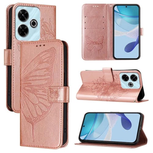 Funda de Cuero con Diseño de Mariposa En Relieve para Redmi 13 4G (Oro Rosa)