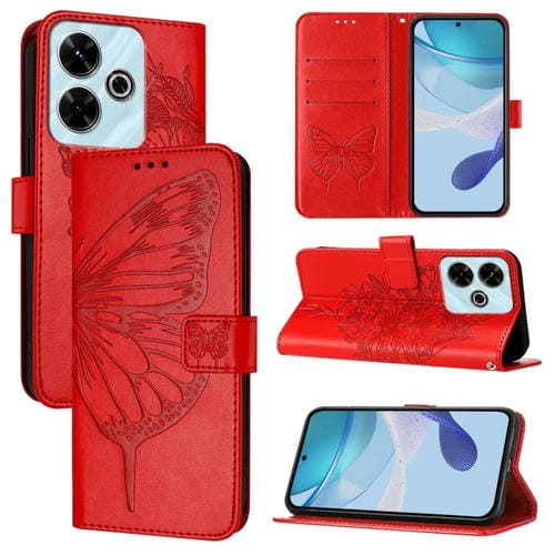 Funda de Cuero con Diseño de Mariposa En Relieve para Redmi 13 4G (Roja)