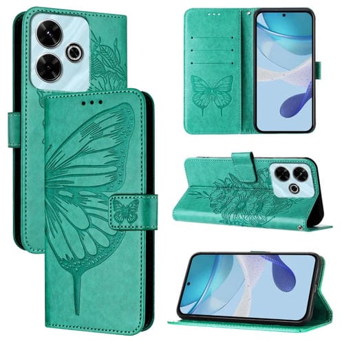 Funda de Cuero con Diseño de Mariposa En Relieve para Redmi 13 4G (Verde)