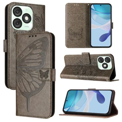 Funda de Cuero para Teléfono Itel A50 con Diseño de Mariposa en Relieve (Gris)