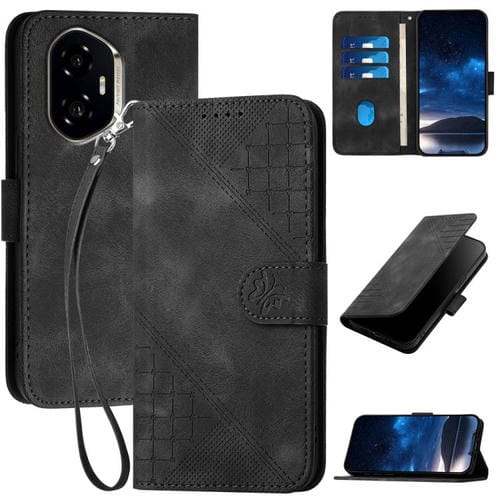 Funda de Cuero para Honor 300 con Diseño de Mariposa en Relieve y Cordón (Negro)