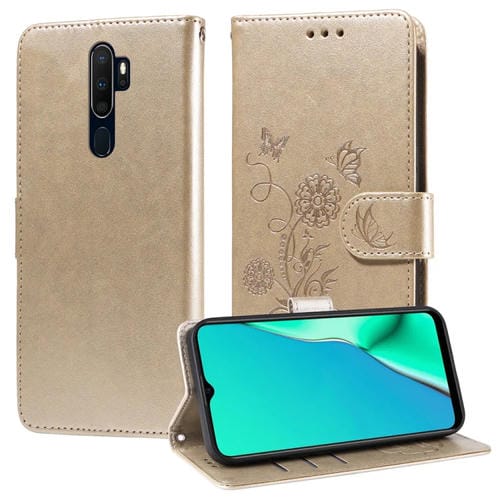 Funda de Cuero con Diseño de Mariposas y Flores En Relieve para Oppo A9 2020/A11X/A5 2020/A11 (Dorada)