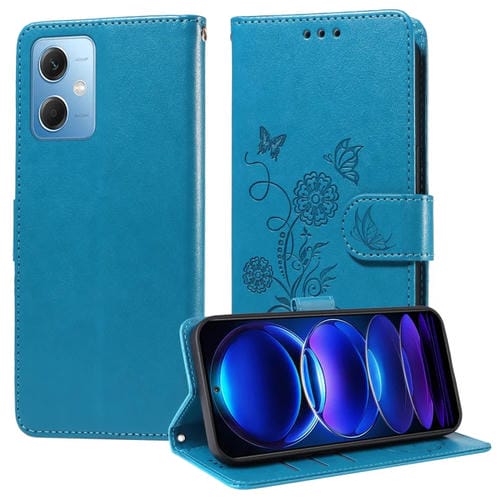 Funda de Cuero con Diseño de Mariposas y Flores En Relieve para Redmi Note 12 5G (Azul)