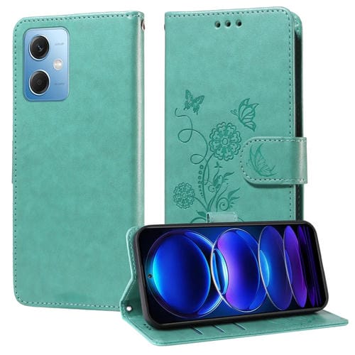 Funda de Cuero con Diseño de Mariposas y Flores En Relieve para Redmi Note 12 5G (Verde)