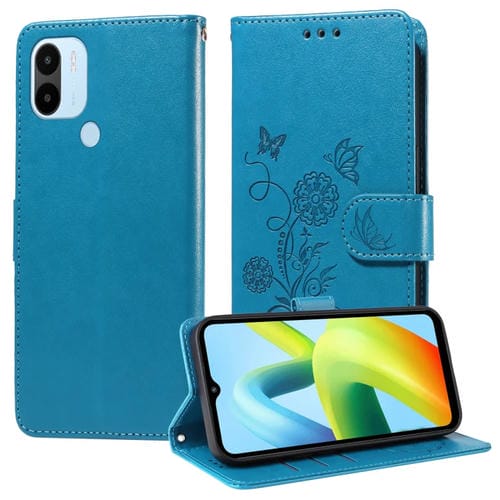 Funda de Cuero con Diseño de Mariposas y Flores En Relieve para Xiaomi Poco C50/C51 (Azul)