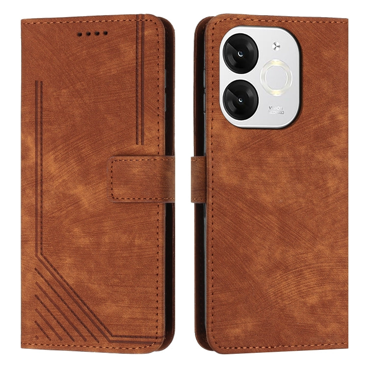 Funda de Cuero Itel A80 con Diseño de Rayas y Cordón (Marrón)