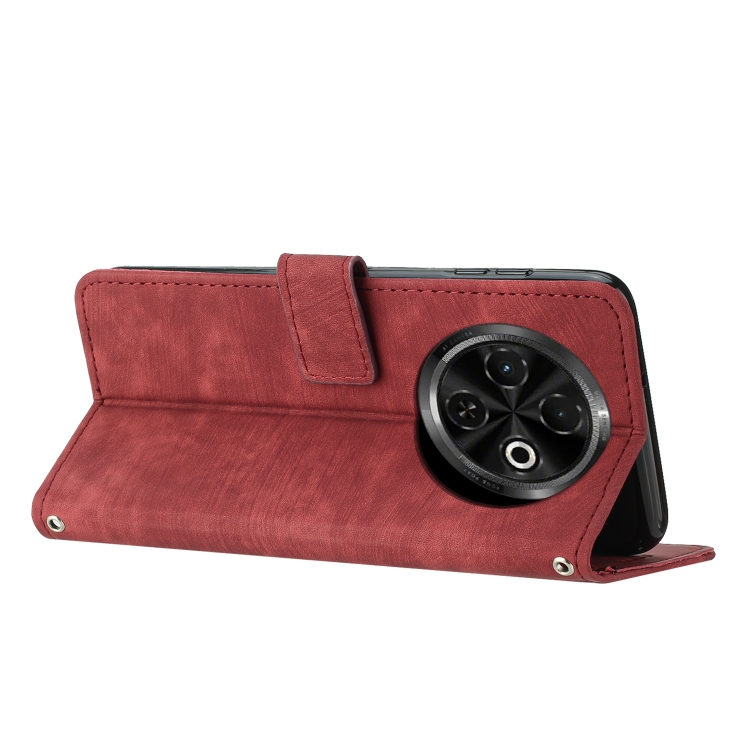 Funda de Cuero para Tecno Spark 30C con Diseño de Rayas y Tacto Agradable (Rojo)