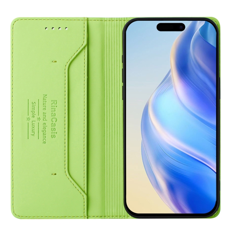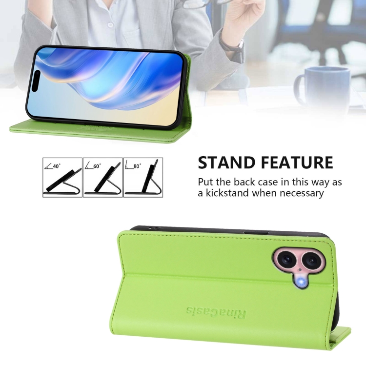 Funda de Cuero para iPhone 16 Rc01 Doble Pliegue Succión Magnética (Verde Hierba)